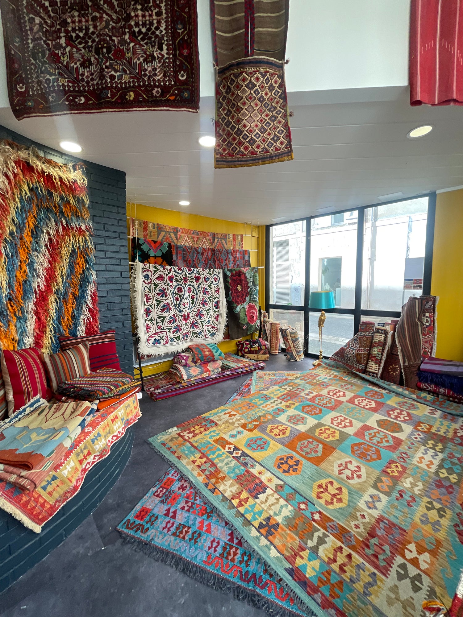 Au 122 Rue Haute, dans le quartier vibrant des Marolles à Bruxelles, la boutique Tapis Bar vous ouvre ses portes dans une ambiance arty et conviviale. Entre le cachet des façades bruxelloises et l’éclat de nos kilims contemporains, explorez une sélection de tapis réversibles en fibres textiles recyclées. L’équipe, passionnée, se fera un plaisir de vous conseiller pour sublimer votre intérieur et entretenir vos pièces favorites. Un passage obligé pour goûter à l’authenticité de l’art kilim au cœur de la capitale belge.